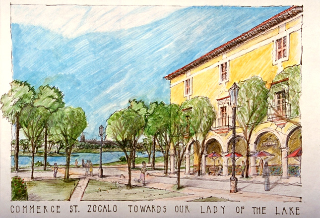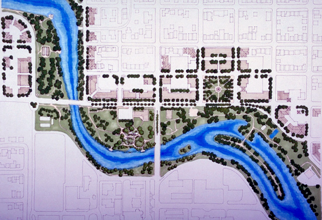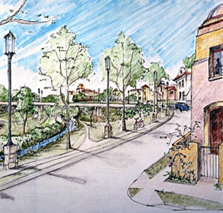The American Institute of Architects sponsored a design charrette in San Antonio. The 4 square mile area of study, near the West side of San Antonio, has been plagued for many years with poverty and environmental degradation. An urban plan was developed and a series of architectural guidelines were created that look at restoring this once thriving predominately Latino community. Apache Creek, which bisects the study area is proposed to be turned into a cohesive linear park. Multi use developments and new open spaces are weaved along the creek with special emphasis on increased densities of development.
